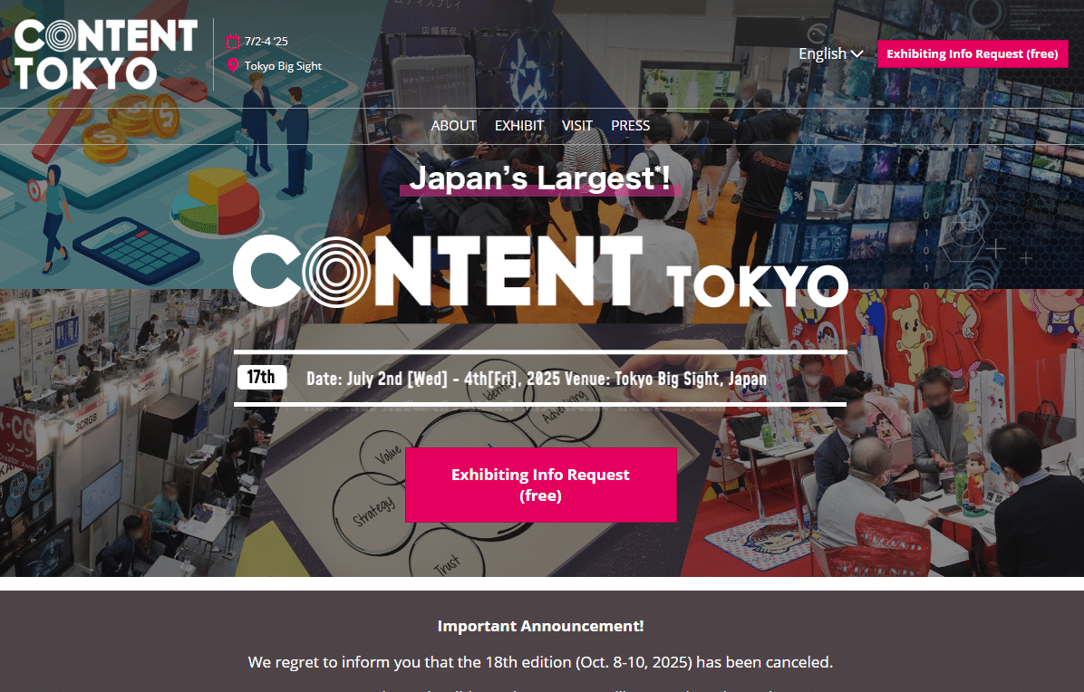 We are pleased to announce our participation in "Content Tokyo 2025," Asia’s largest content exhibition held annually in Tokyo, Japan.